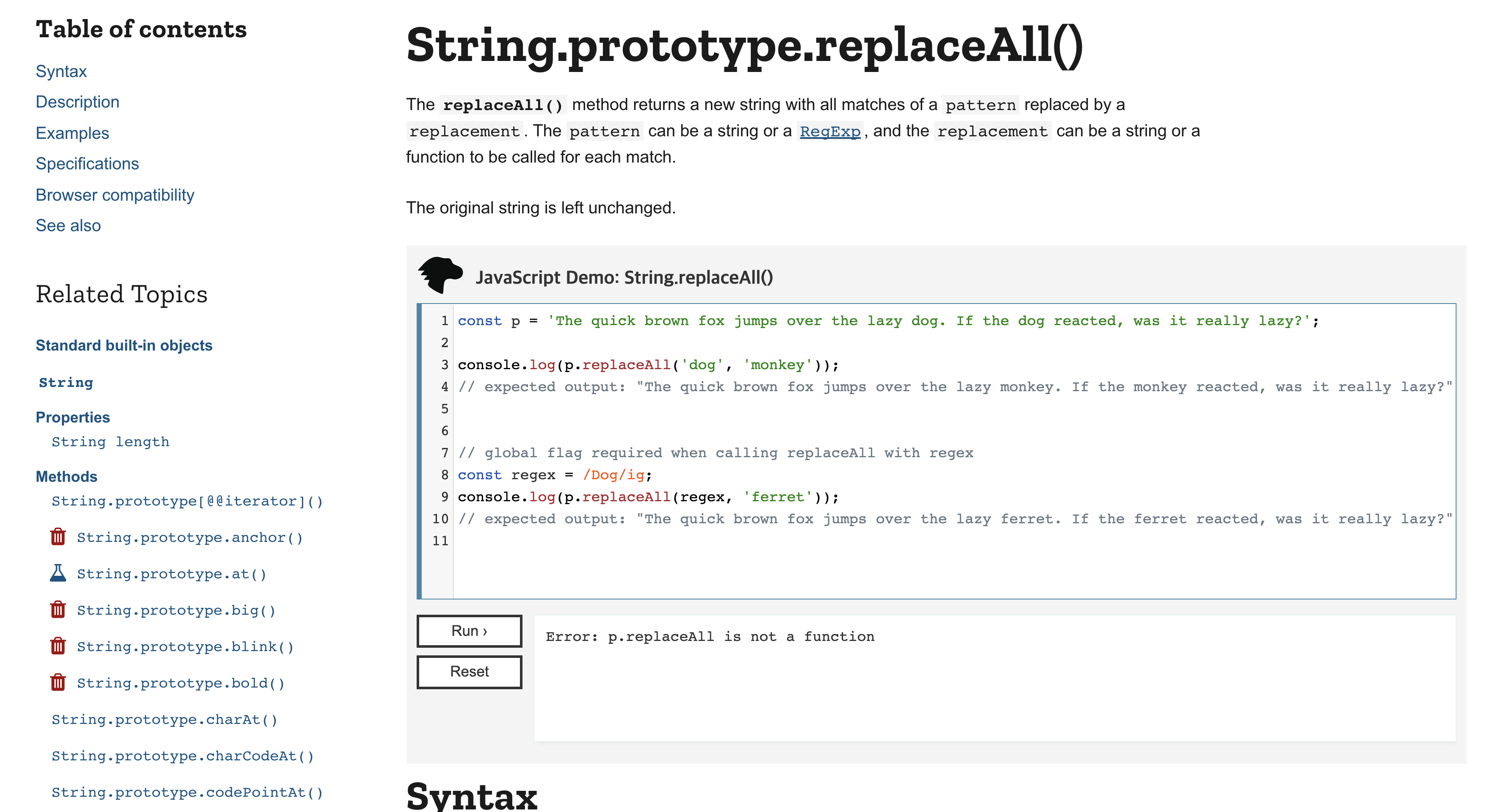 위 사진과 같이 공식 문서에서도 replaceAll이 실행이 안될 때가 있습니다.
