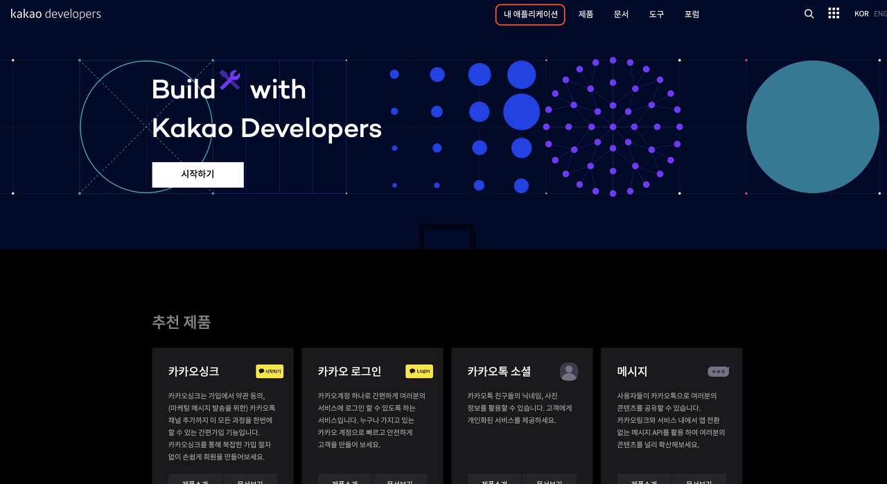 1. https://developers.kakao.com/ 에 접속하고 내 어플리케이션을 클릭합니다