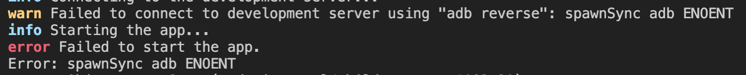 warn Failed to connect to development server using "adb reverse": spawnSync adb ENOENT