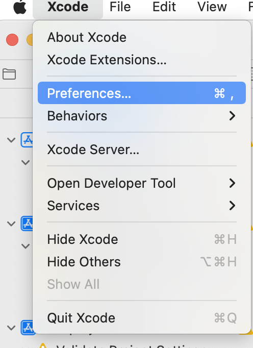 1. Xcode -> Preferences 접근