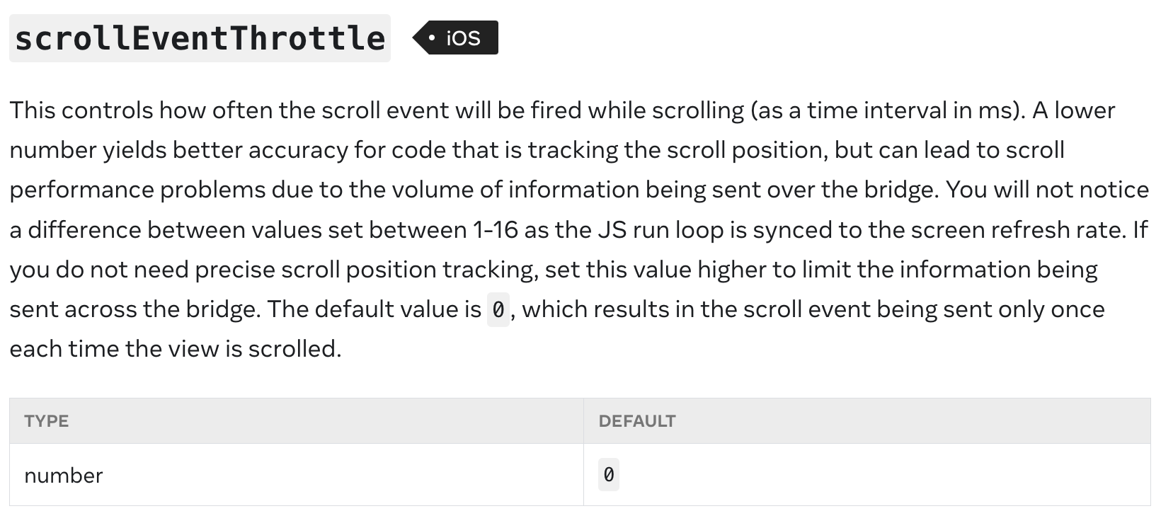 참고 : https://reactnative.dev/docs/scrollview#scrolleventthrottle-ios