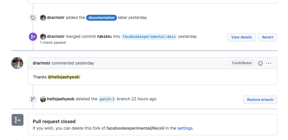 오픈소스에 관심이 많은 저는 페이스북에서 만든 Recoil에 한번 기여하고 싶은 욕심이 생겼습니다.