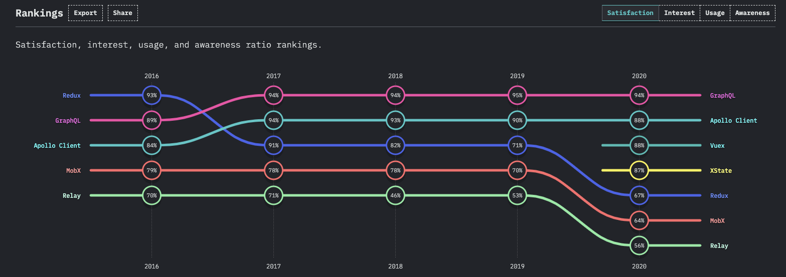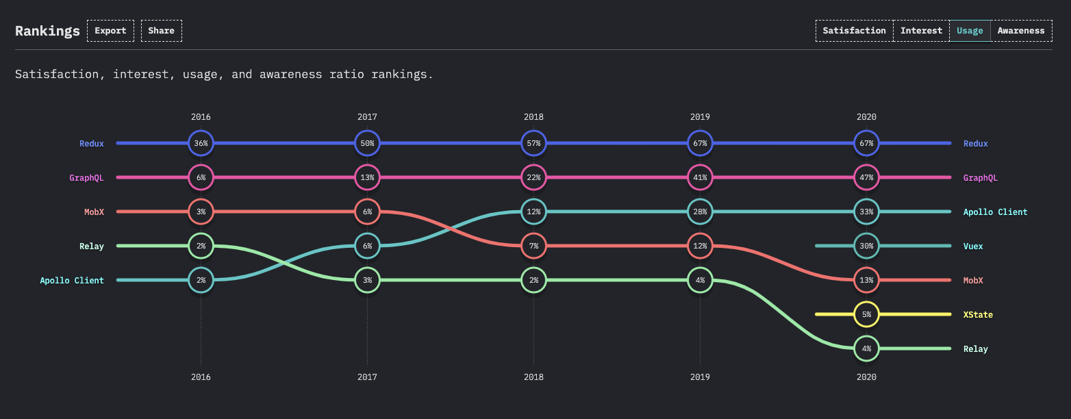 실제로 redux는 사용률은 1위이지만 만족도는 5위에 위치하고 있습니다.